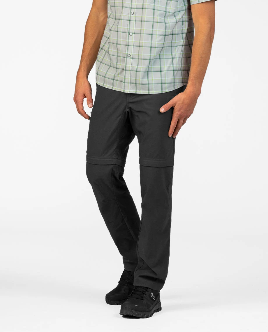 We’ll be direct—zip-off pants were never known for their high style. So when posed with the challenge to make one to fit Stio’s aesthetic, our design crew was ready to take it on. They grinded tirelessly to create a convertible utility pant that retained its universal mountain functionality yet felt sleek, streamlined and—dare we claim—cool enough to travel to base camp and beyond. Our realized objective fuses structured Tetonic Twill™ with slimmer lower legs, a button-fly, five-pocket, drop-pocket style and a subtle waist adjustment system that ends the need to crank on webbing to keep them up. A hidden hem cinch cuff keeps the bugs out on treks, floats and alpine climbs.