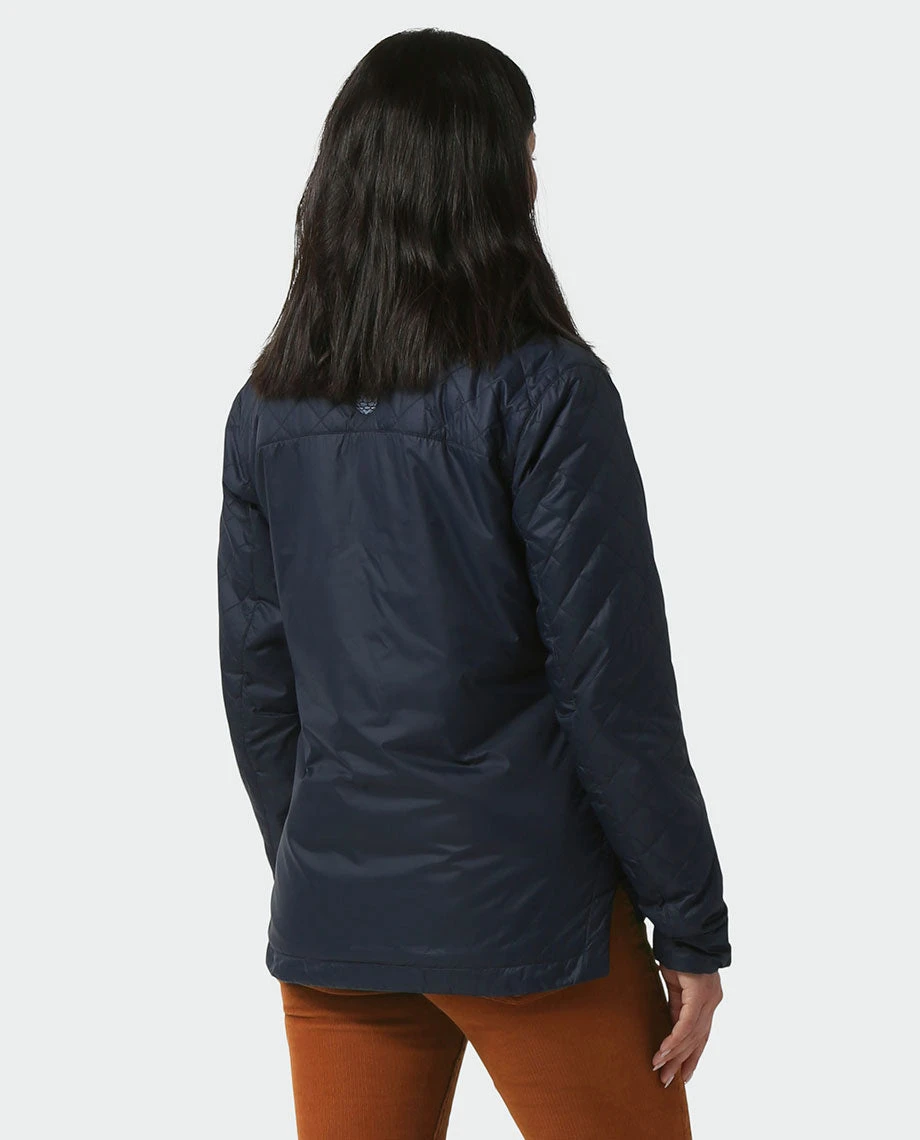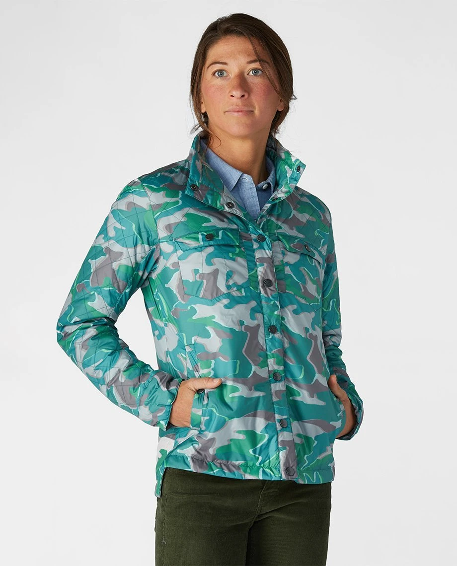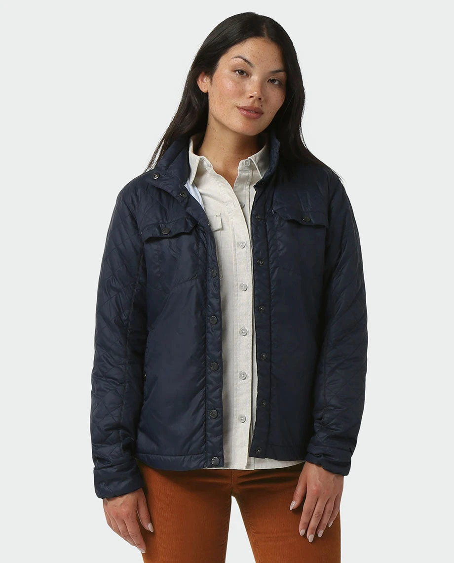 A shoulder-season layering staple that deftly moves between town and the backcountry, the Skycrest Snap Shirt is a multi-functional piece that provides grab-and-go warmth with distinctive style. Featuring a snap-front quilted design with a shirttail hem, and filled with soft, lightweight 60g Thermore® Ecodown® synthetic insulation, the Skycrest does double duty as a jacket in mild fall temps and as a shirt when the mercury drops. The Skycrest’s packable, quick-drying design also makes it an ideal crossover piece for late-season mountain bike rides or winter fly-fishing. Snap-button chest and hand pockets keep your small items secure.