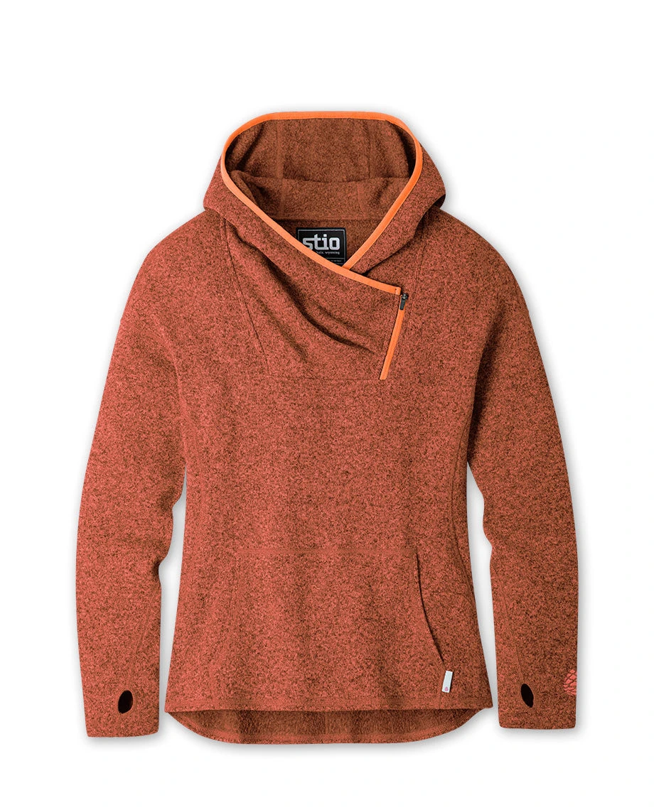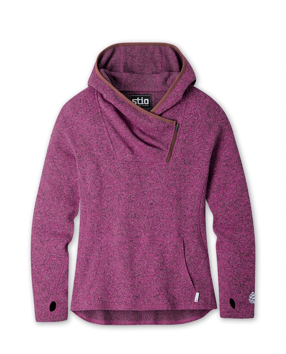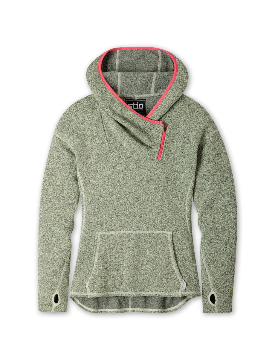 Living in Jackson Hole, we love fleece. It’s an athletic staple that’s also welcome at practically any mountain town function. Constructed with Recycled Lofton™ fleece, this casual hoodie with a sweater knit face and cozy, brushed interior comes in poppy colors and boasts stylish feminine details that elevate your look. Supremely comfortable, its wide neckline and unique front zipper allow for easy on-and-off. Features include princess seam lines, a drop tail hem, and a ruched collar with a contrast zipper at the neck. Thumbholes provide additional warmth when the temps drop.