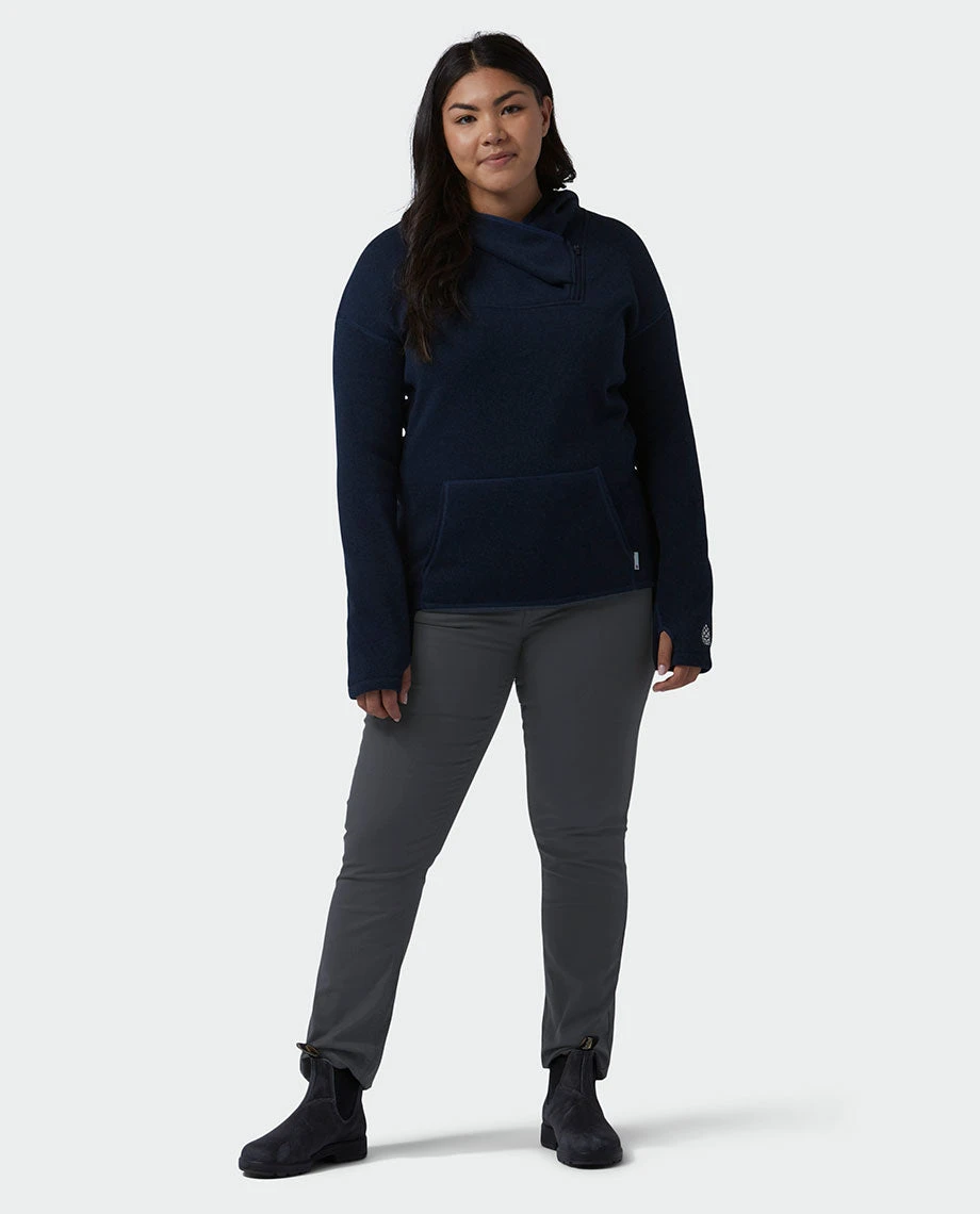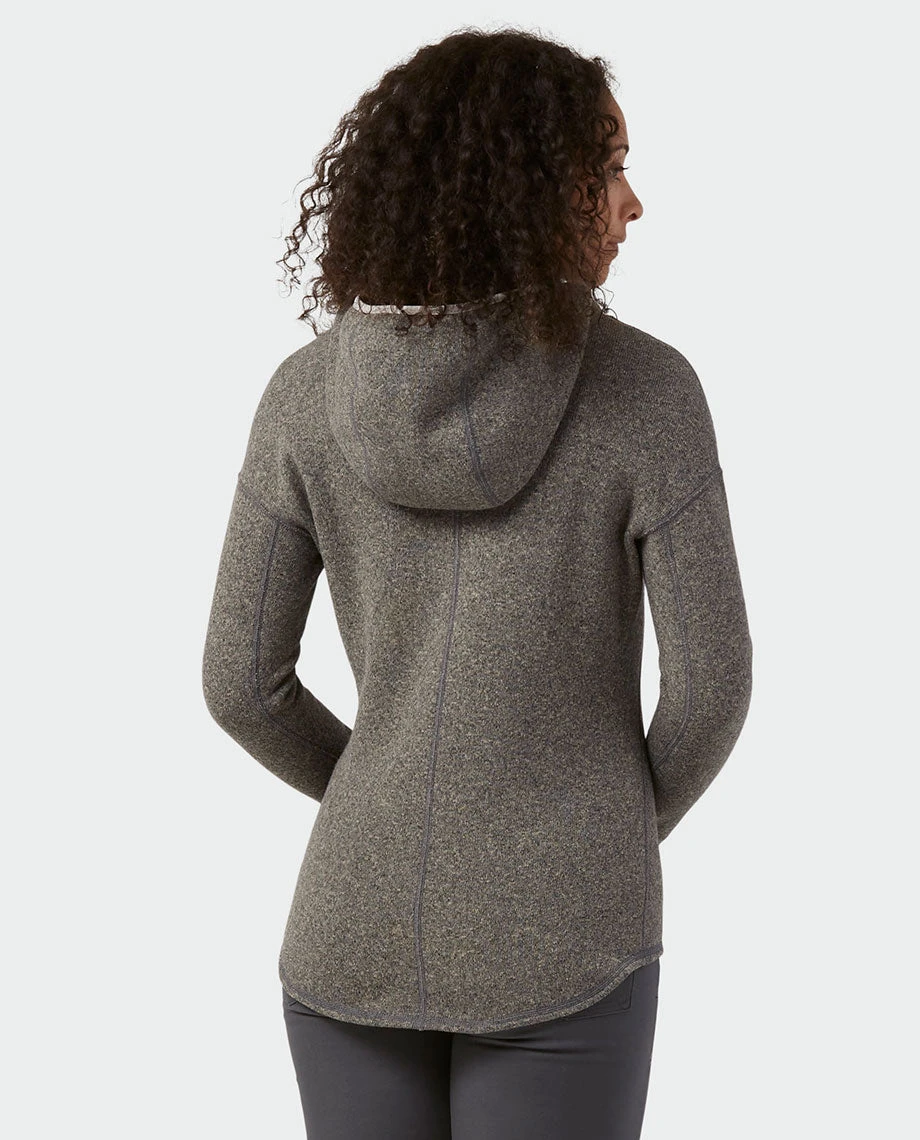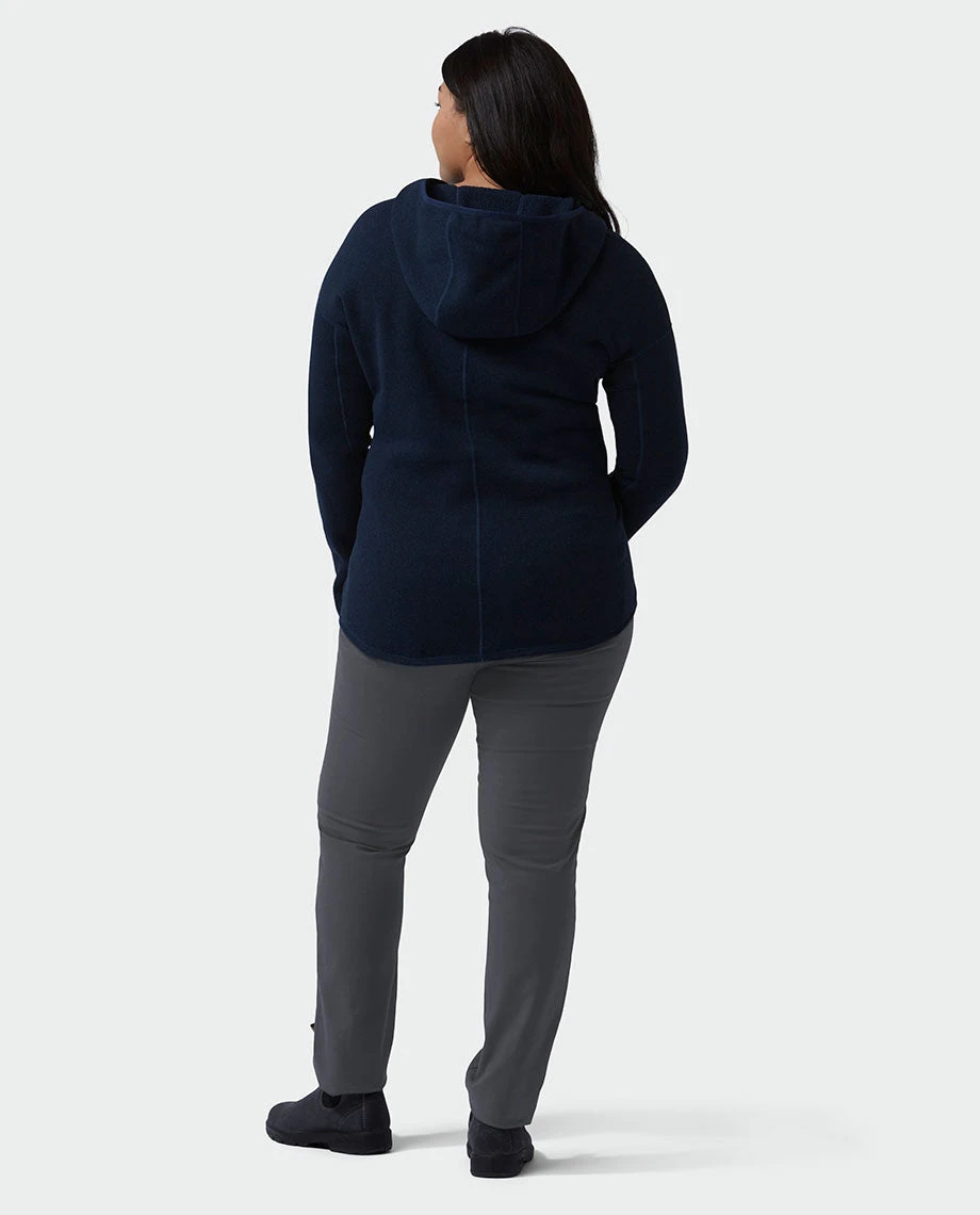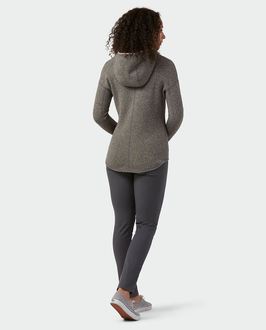 Living in Jackson Hole, we love fleece. It’s an athletic staple that’s also welcome at practically any mountain town function. Constructed with Recycled Lofton™ fleece, this casual hoodie with a sweater knit face and cozy, brushed interior comes in poppy colors and boasts stylish feminine details that elevate your look. Supremely comfortable, its wide neckline and unique front zipper allow for easy on-and-off. Features include princess seam lines, a drop tail hem, and a ruched collar with a contrast zipper at the neck. Thumbholes provide additional warmth when the temps drop.